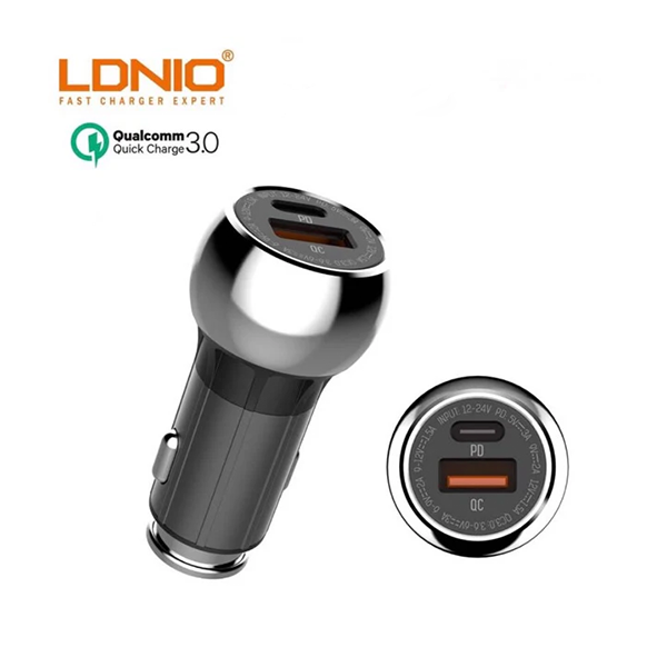This is the LDNIO C1 Fast Car Charger, a dual-port solution designed for high-speed charging in a vehicle. The product highlights its compatibility with multiple modern fast-charging standards to power up a variety of devices, including phones, tablets, and notebooks. It has a compact, sleek design ...