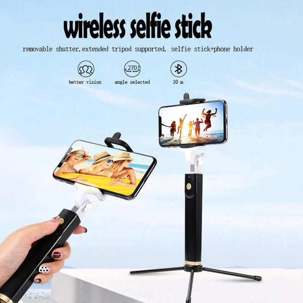 Capture the perfect shot with the SelfieCom K08 Wireless Selfie Stick. This sleek and compact selfie stick lets you take photos and videos from a distance without any cords. Its wireless design and easy-to-use remote make it simple to snap a picture or start recording with just the press of a button...