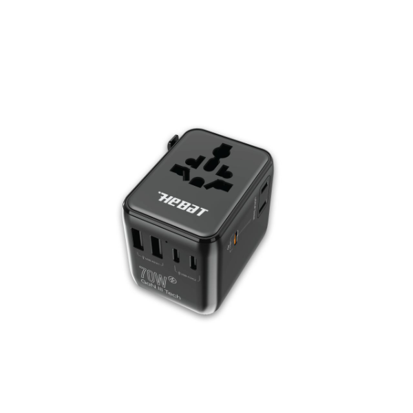 Never be without power again, no matter where your travels take you. The HEBAT 70W GaN Travel Adapter is the ultimate all-in-one charging solution, combining universal compatibility with high-speed performance in a compact, durable design. Featuring cutting-edge GaN (Gallium Nitride) III Tech, this adapter delivers a powerful 70W output, capable of fast-charging your laptop, tablet, and smartphone simultaneously. With built-in universal plug compatibility for over 150 countries, multiple charging ports including Power Delivery (PD) USB-C, and USB Smart Quick Charge 3.0, it's the only power adapter you'll need for global adventures. Travel lighter, charge faster, and stay connected.